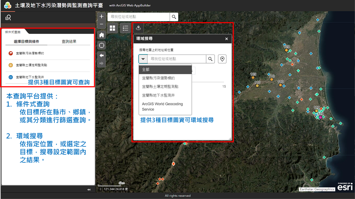 套用應用樣版方式:須先儲存「網路地圖」後,即可進入「圖資工具 widget 元件庫」 ,依據需求選擇所需工具進行配置,參考下方說明流程。